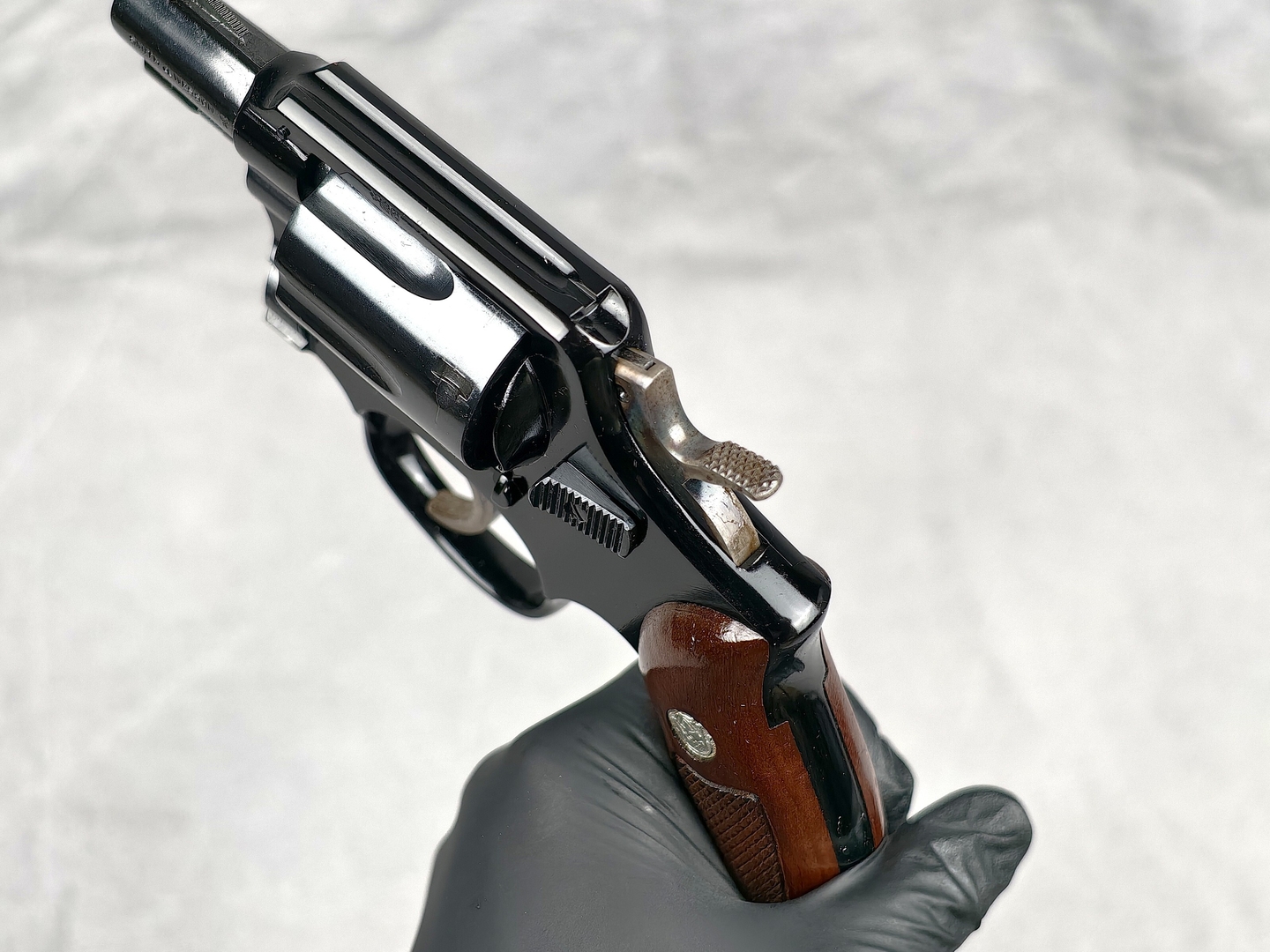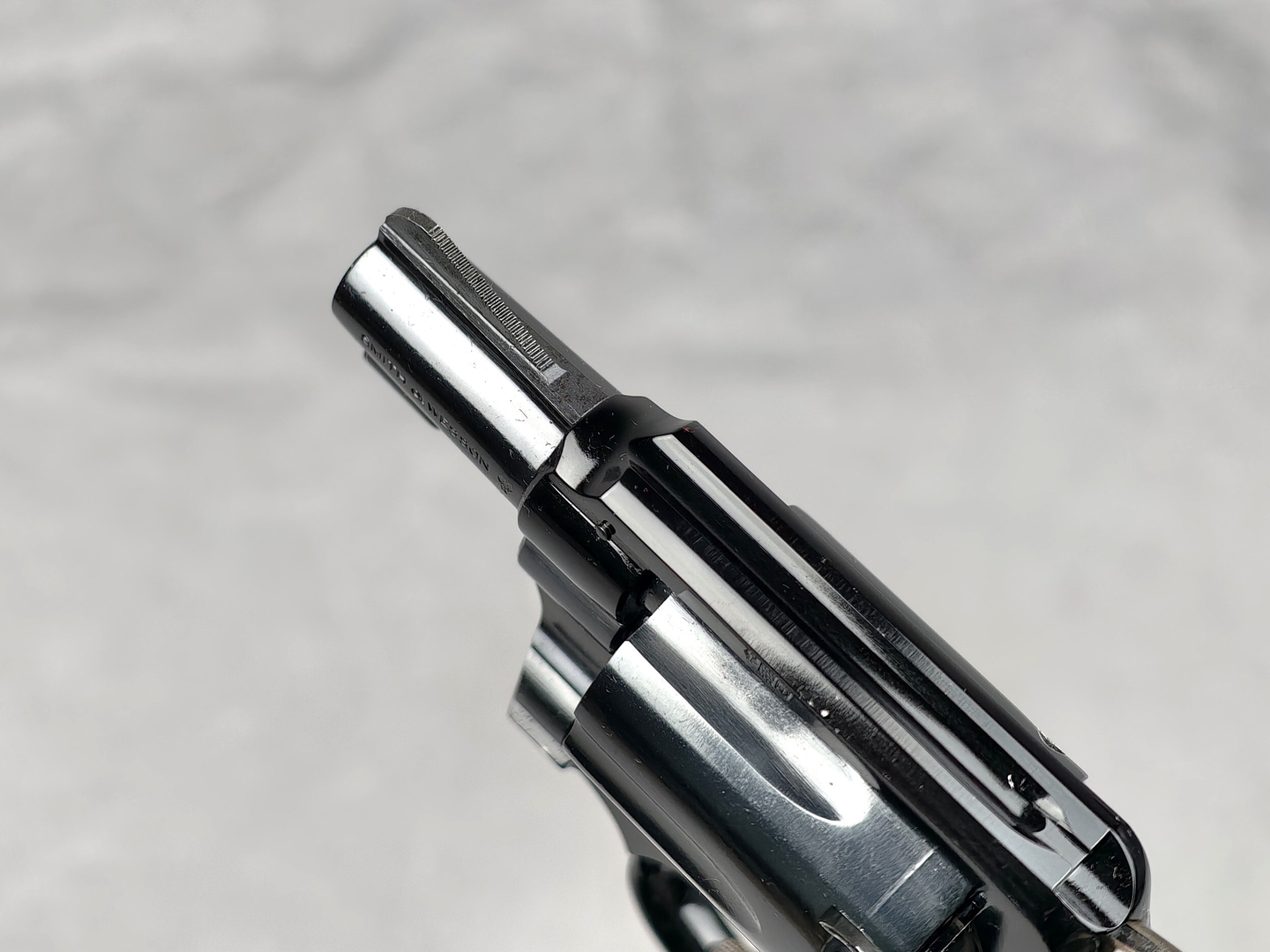 Der Smith & Wesson Model 12 Airweight ist ein Double-Action-Revolver mit maximalem Fokus auf Führbarkeit im Sinne des "Everyday Carry". Der Rahmen ist schlank geformt und besteht vollständig aus Aluminium, um das Gesamtgewicht der Waffe zu senken. Dazu passend misst der Lauf nur 2 Zoll Länge. Die offene Visierung verzichtet bewusst auf komplizierte, abstehende Bauteile und erinnert vielmehr an eine Fluchtvisierung.