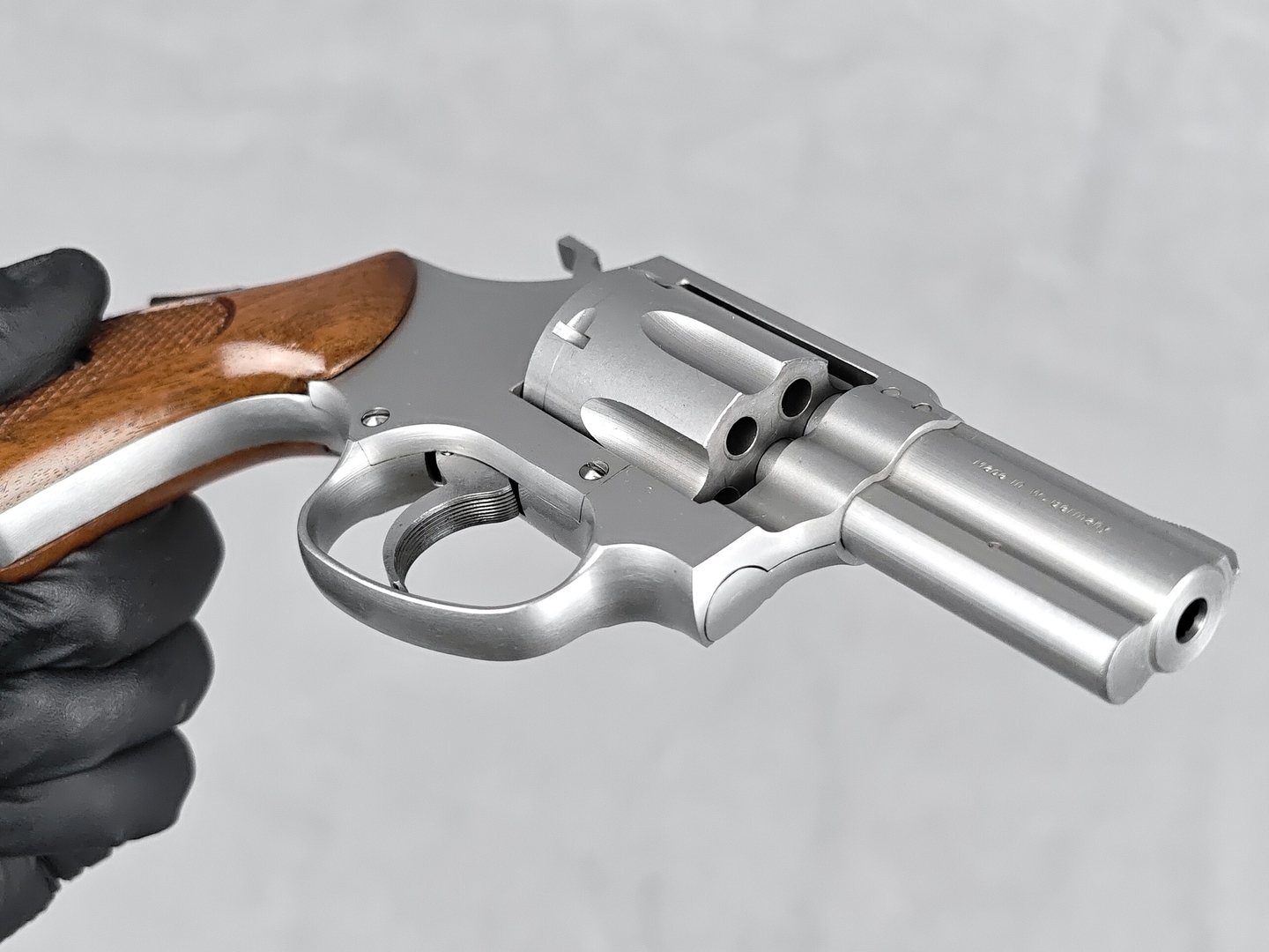 Das vorliegende Exemplar ist im sehr guten Zustand mit geringen Gebrauchs- und Altersspuren, wie auf den Fotos zu sehen. Das Laufprofil ist einwandfrei, der Schlossgang und der Trommeltransport fühlen sich "knackig" an. Aus der Waffe wurden vermutlich nur recht wenige Schuss abgegeben.