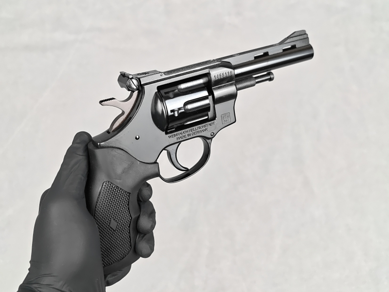 Der Weihrauch HW 4 ist ein bedürfnisfreier Revolver aus der Fertigung des bekannten deutschen Traditionsherstellers. Da das Kaliber 4mm RZ eine Mündungsenergie von unter 7,5 Joule hat, trägt der HW 4 das "F-im-Fünfeck", welches man eigentlich von Luftgewehren kennt. Für den Erwerb der Waffe ist daher keine Bedürfnisbescheinigung (z.B. vom Sportschützenverband) notwendig! Dennoch muss die Waffe in eine WBK eingetragen werden - bitte klären Sie das Prozedere mit Ihrer zuständigen Waffenbehörde.
