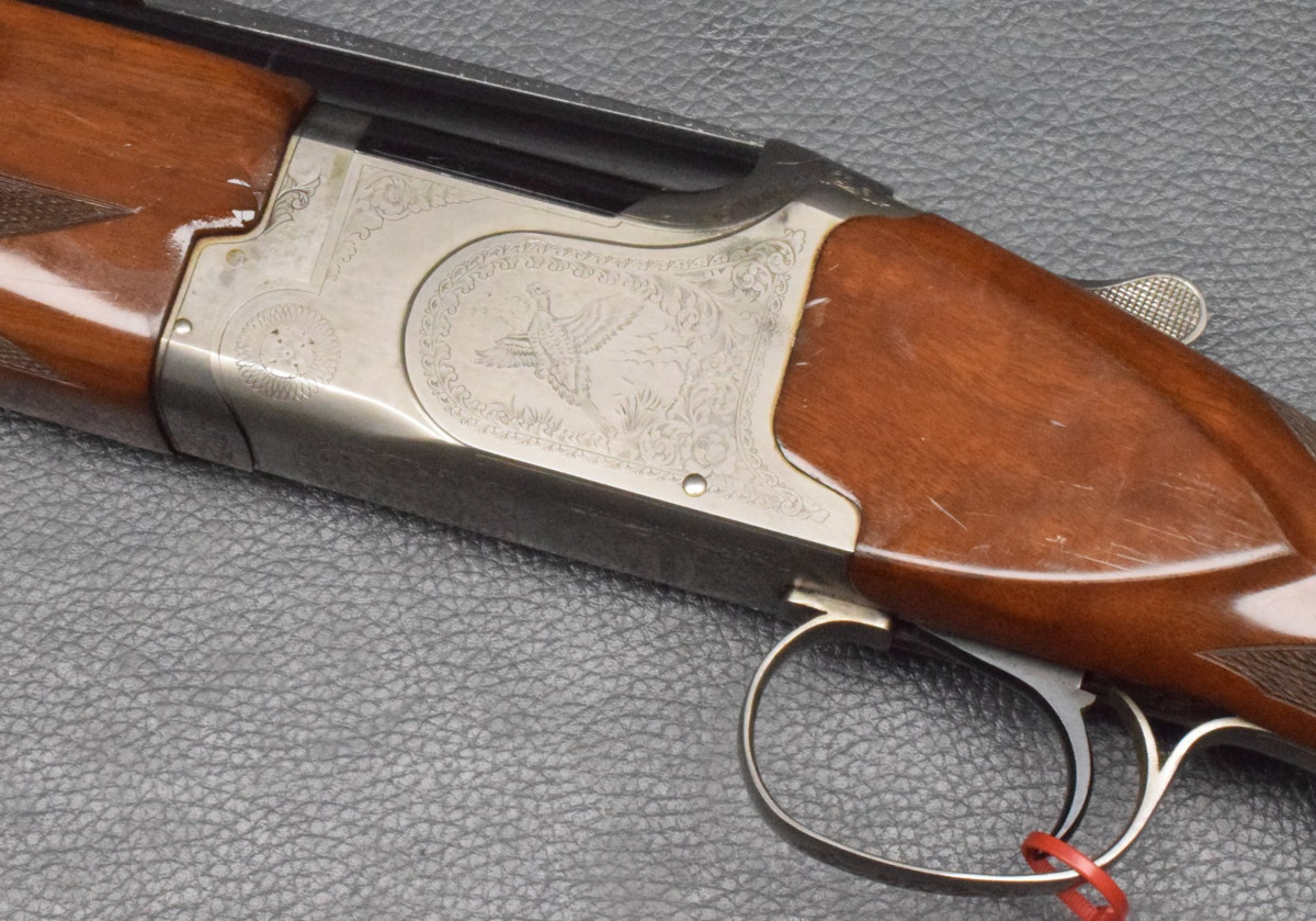 Läufe sehr gut, Brünierung 97%, Schaft gut