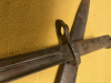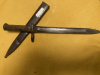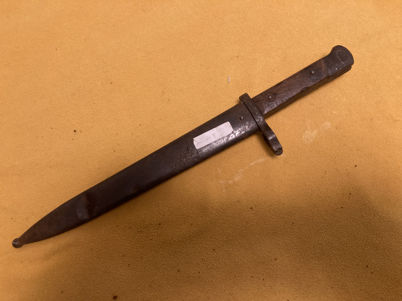 Hier versteigere / verkaufe ich ein altes Bajonett mit Blutrille, Hersteller? (f. Mauser ? ), sehr viel Patina, Holzgriff mit kleinem Sprung, Scheide mit Beule, siehe Bilder. Gesamtlänge ca. 36,6 cm, Klinge ( abgebrochene Spitze ) ca. 23,8 cm, Griff ca. 11 cm. Privatverkauf. Versand innerhalb Deutschland. Altersnachweis erforderlich.