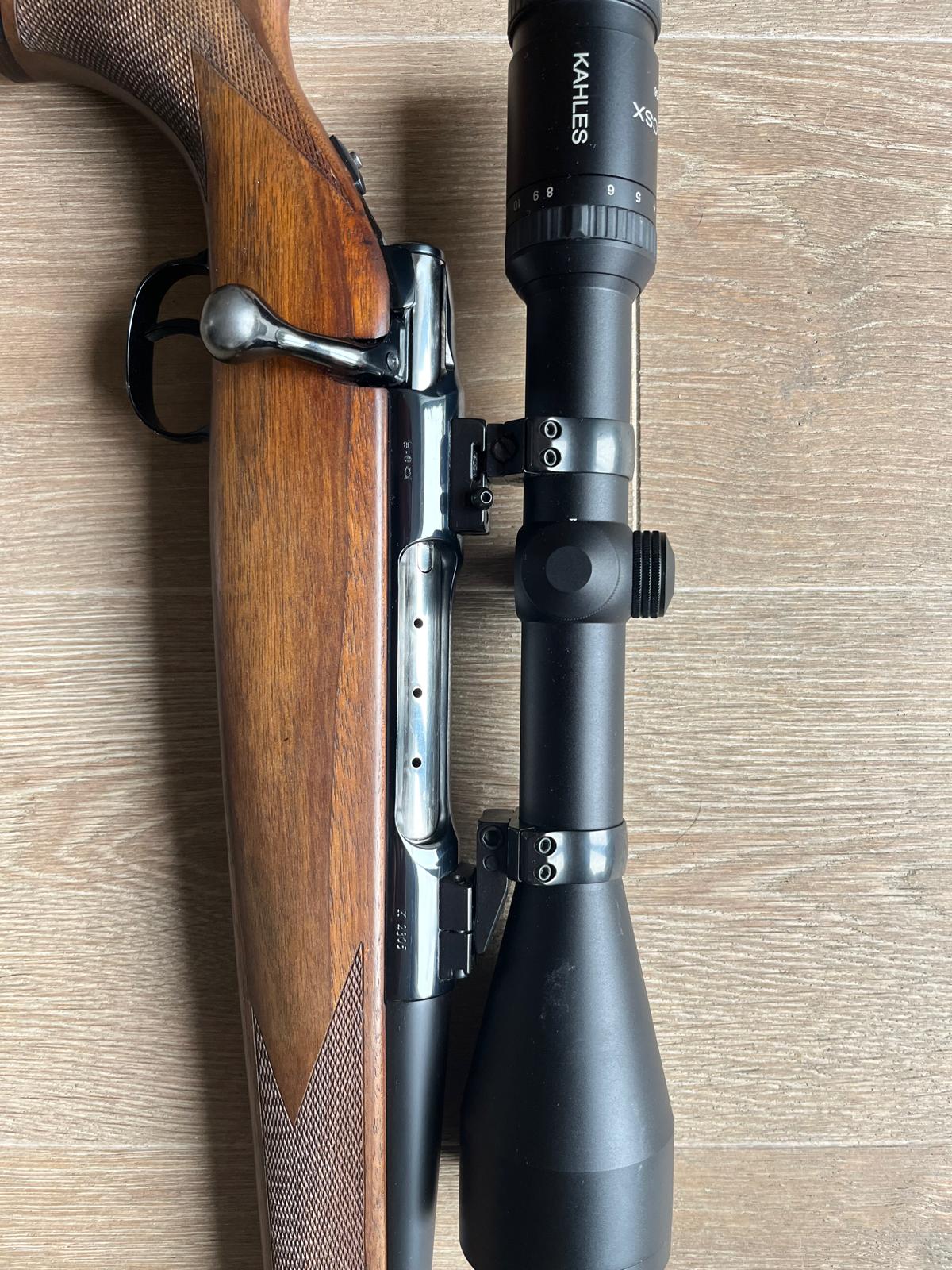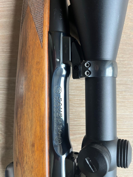 Verkaufe meine Sauer 90, Kal. 30-06 Springfield, Leuchtabsehen 4A, auf EAW Schwenkmontage. Schöner Schaft nahezu ohne Gebrauchsspuren. Ventilierte Gummischaftkappe, Monte Carlo Backe, Rosenholzabschluss, Länge Schaftende (Mitte) bis Abzugszüngel 36 cm, System glänzend und Lauf mattschwarz wie neu, Lauflänge 57 cm, Abzug mit einstellbarem Rückstecher, Lauf absolut blank. Über die Verarbeitung und den legendären Schlossgang einer Sauer 90 braucht man wohl keine Worte mehr zu verlieren. Derartige Qualität findet man heutzutage kaum noch. Tubus des Zielfernrohres ohne Kratzer oder sonstige Beschädigungen. , Bild klar und randscharf ,keine Kratzer auf Objetiv oder Okular. Zielfernrohr insgesamt ebenfalls neuwertig. Schussbelastung nur wenige Schüsse, neuwertige Waffe. Gerne Besichtigung, Abholung oder Versand mit autorisiertem Lieferservice. Privatverkauf: keine Garantie, Gewährleistung, Rücknahme. EWB erforderlich.