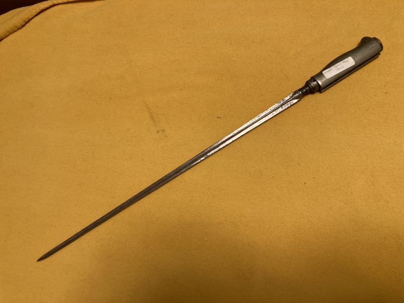 Hier versteigere / verkaufe ich ein französisches LEBEL-Bajonett 1886/93 mit einer VIERKANT-KLINGE. Der Messinggriff ist abschraubbar. Gesamtlänge: ca. 53 cm, Klinge: ca. 42,3 cm, abschraubbarer Griff ca. 10 cm. Privatverkauf. Versand innerhalb Deutschland. Altersnachweis erforderlich.