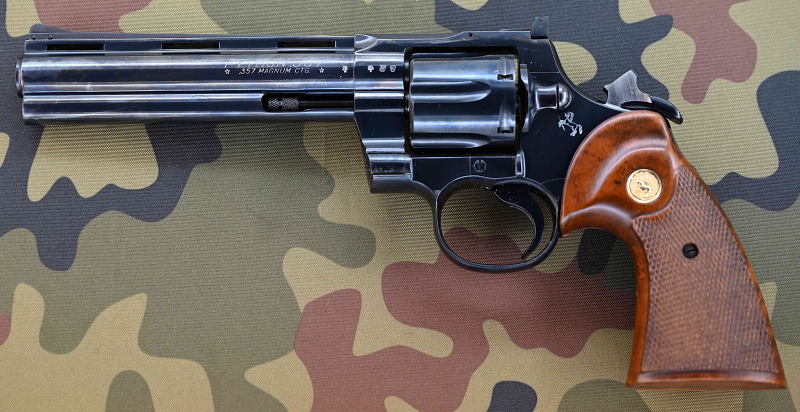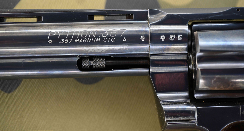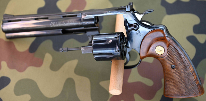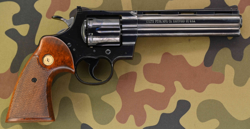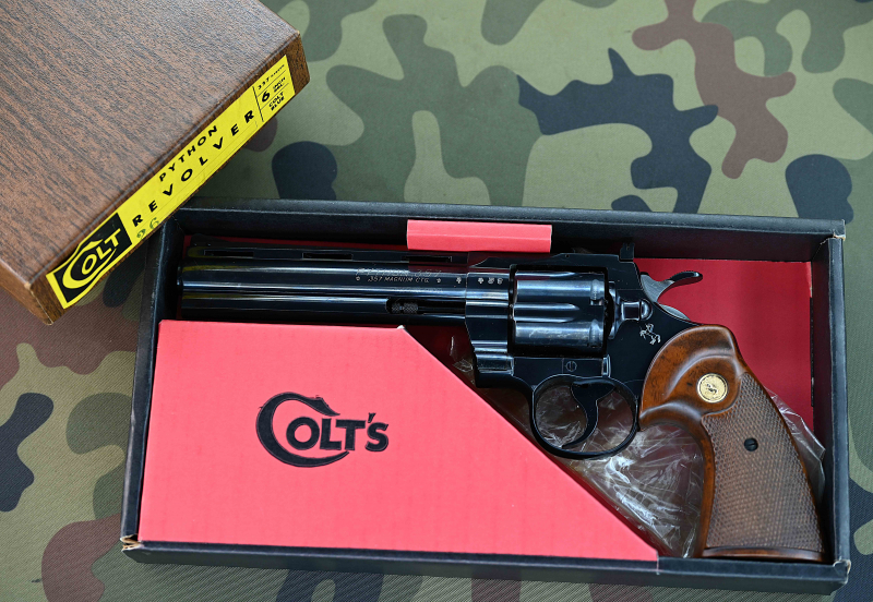 Absolut fabrikneu erhaltener Revolver, D.A.-Revolver, Sportrevolver, Matchrevolver, Sammlerwaffe, 6-Zoll-Waffe, sehr früher Python in Originalverpackung: