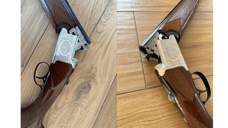 Selektiver Einabzug durch Druckknopf im Abzug. Sicherung auf dem Kolbenhals. Die Läufe sind blank, der Verschluss ist dicht und ohne Spiel. Mit Ejektor. Abstand vom Abzug bis zur Schaftkappe 36 cm, Gesamtlänge 116 cm. Kein Stahlschrotbeschuss.