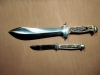 Ich verkaufe ein gebrauchtes Waidbesteck, bestehend aus Waidblatt, Nicker und Holzkiste mit Inneneinlage, wobei bei der oberen Deckeleinlage ein Stück fehlt. Die Messer sind nummerngleich. Das Herstellungsjahr ist 1980. Beide Klingen sind unbenutzt und haben den originalen Werksschliff. Die Gravurplatte ist nicht graviert. Maße, Gewicht, etc. sind bekannt oder im Internet verfügbar. Die Blattklinge hat Lagerspuren, siehe Bild.