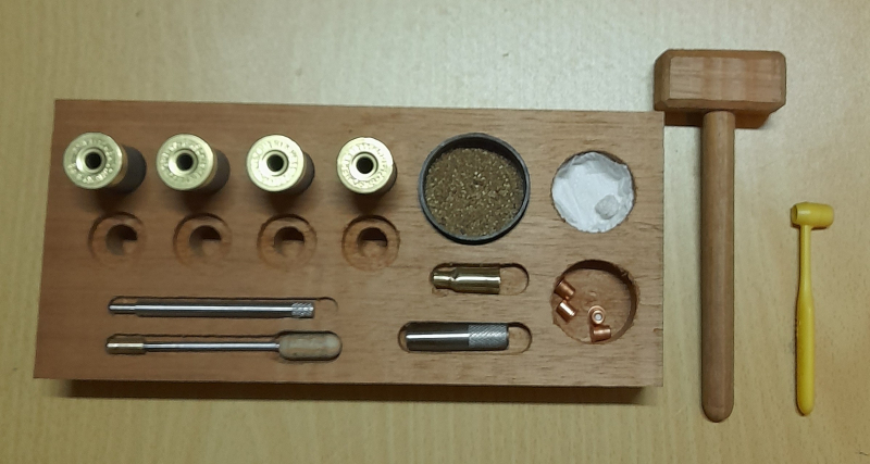 ich biete ihnen hier ein Lade-Set für Schrotpatronen im Kaliber 12/65 an. Es handelt sich um ein Set mit dem sie per Hand ihre Schrotpatronen für das Heimtraining Coachgun Wiederladen können. Da ich nun aus Altersgründen das Westernschießen aufgebe kommt nun auch neben meiner Coachgun – Kutscherflinte (Eine andere Auktion hier im E-Gun) auch mein Wiederladeset für das Heimtraining zum Verkauf. Alles was sie auf dem Bild sehen gehört zur Auktion – Ladeblock, vier Ladehülsen, Entzunder-Nadel, Fülltrichter, Lade-Dorn, Zündhütchen-Setzer, Schöpfkelle und Ladehammer. Der Inhalt der Näpfe ist mit inbegriffen. Das Laden ist recht Simpel: Ladehülse Bezundern – Papierkügelchen bis ganz nach unten stopfen – 1 – 1 ½ Löffel mit Granulat befüllen – Papierkügelchen oben auf setzen damit nichts aus der Ladehülse rieselt – FERTIG. Da die Energie der Ladehülsen unter 7,5 Joule liegt und nur mit den Zündhütchen 209 betrieben wird ist nach derzeitigem Waffenrecht der Erwerb frei und nicht Eintragungspflichtig. Und zum Schluss noch das Übliche - dies ist ein Privatverkauf daher Garantie - Rückgabe - Umtausch und der gleichen Ausgeschlossen.