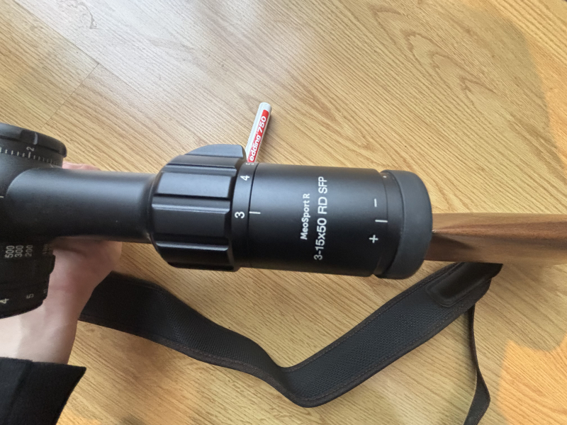 Montiert mit einem Meopta Zielfernrohr MeoSport R 3-15x50 auf einer Schwenkmontage.