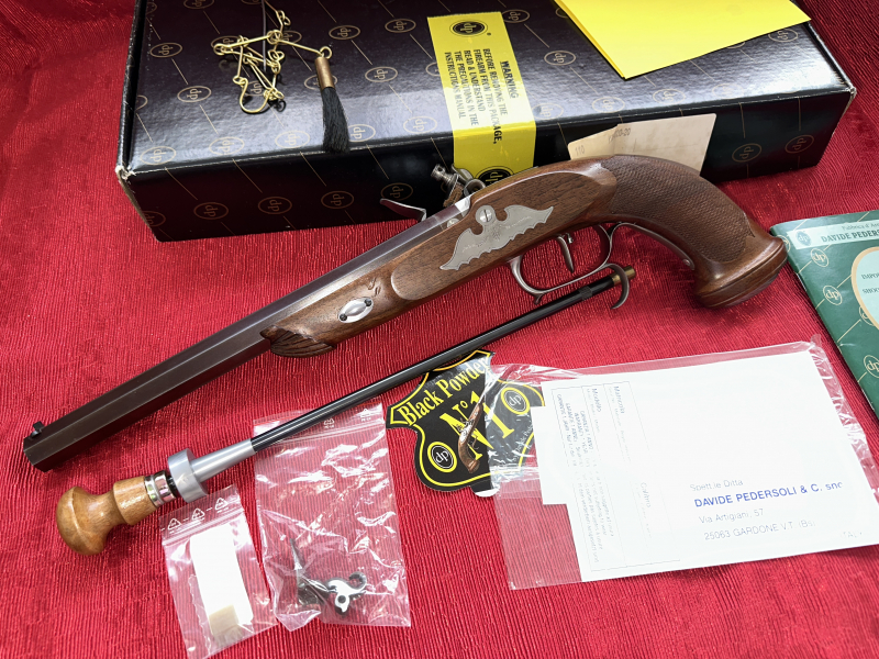 Aus Sammlung die Gelegenheit!Fantastisches,frühes Exemplar von Pedersoli,Target Version - ungeschossen,praktisch wie aus dem Laden,war reines Vitrinenstück wie aus den Bildern ersichtlich.Perfekte Verarbeitung &Qualität,originale Bräunung -wunderschönes Holz ,Gravuren usw..Obwohl nur sammlerisch minimal trocken bespielt,also noch nie Pulver gesehen,bleibt der Hahn nicht gespannt bzw. rastet nicht ein-für geschickte Hände bestimmt sicher kein Problem,hier ist noch, wie beim Original die starke Blattfeder im Schloss verbaut.Lauf mit tiefen,scharfen Zügen,sehr gute Handlage.Die Bilder als Beschreibung beachten.Wird so in dieser Güte leider in diesem Set nicht mehr gebaut!Von privat ab 1€ ohne Rücknahme.EU-Ausland Versand 25€.