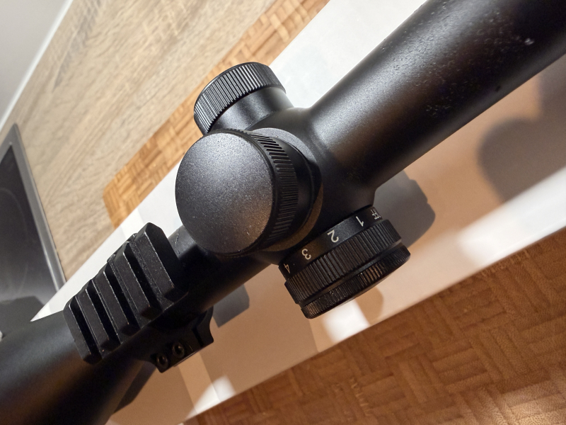 Gekauft im August dieses Jahres, nur wenig genutzt. Das Absehen ist in mehreren Stufen beleuchtbar – wahlweise in Rot oder Grün.