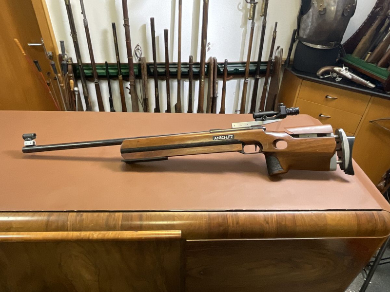 zum Verkauf steht eine ELB Anschütz Supermatch Modell 1813 im Kaliber .22lr. Bei dieser Waffe handelt es sich um eine präzise Einzellader-Kleinkaliberbüchse, entwickelt für den anspruchsvollen Wettkampf- und Trainingsbetrieb im Schießsport. Dieses Exemplar trägt die Seriennummer 213287 und befindet sich in einem guten, gepflegten Zustand. Die Ausstattung umfasst ein 0,75-Dioptrien-Adlerauge M18, das eine klare und konstante Zielerfassung ermöglicht. Als Korn ist ein 4-mm-Plastikringkorn montiert, ideal für präzise Scheibenschüsse. Die verstellbare Irisblende (0,6–2,4 mm) am Diopter erlaubt eine flexible Anpassung an unterschiedliche Lichtverhältnisse und persönliche Sehpräferenzen. Die Büchse verfügt zudem über eine verstellbare Schaftbacke, die eine ergonomisch optimale Anschlagposition ermöglicht. Ein Auflagekeil ist ebenfalls vorhanden und unterstützt eine stabile Auflage beim liegenden oder aufgelegten Schießen.