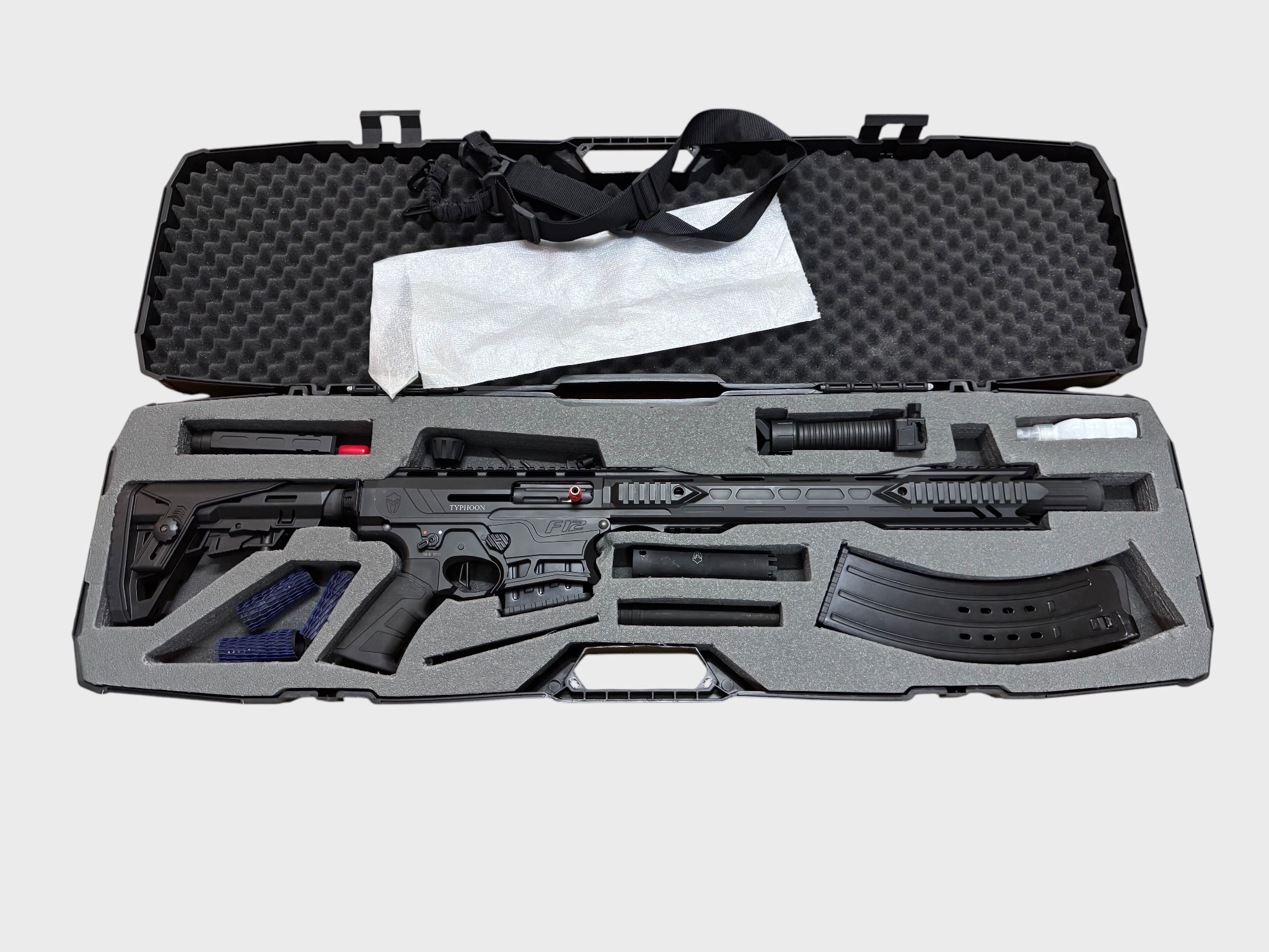 Typhoon IPSC Flinte im Kaliber 12 / 76 mit 1 x 10er Magazin & 1 x 5er Magazin, Zubehör und Waffenkoffer .