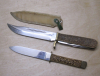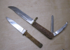 große Messer hat leichte Alters- und Gebrauchsspuren, die Klinge des kleineren Messers sieht