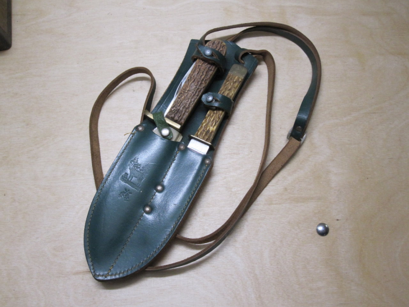 Die Messer haben Hirschhorngriffschalen, das große Messer steckt noch in einer Extrahülle. Das
