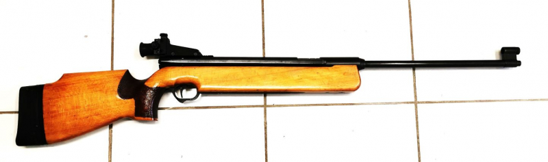 Sie bieten auf ein Neuwertiges Luftgewehr Haenel Seitenspanner Modell 312 für 4,5 Diabolo. Diopter Original Modell 312.