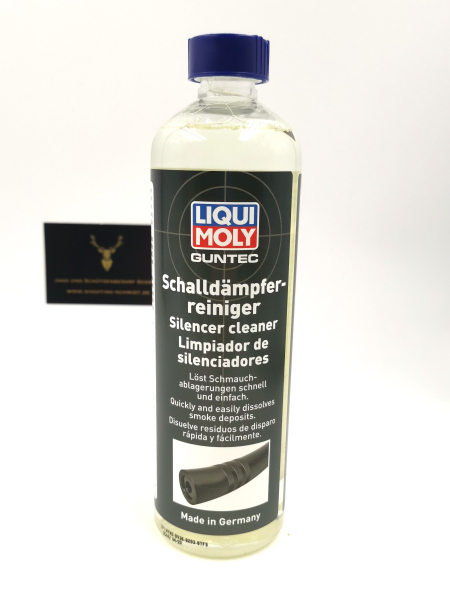 Schalldämpfer nach der Reinigung sorgfältig mit Wasser spülen, trocknen und mit GUNTEC Waffenöl oder GUNTEC Waffenpflegespray konservieren.