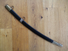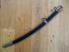 Zum Verkauf kommt eine Säbelscheide, das Innenleben ist aus Holz, siehe Bilder. Der Scheidenmund hat ein Maß von 7mm X 39mm und die Länge der Scheide beträgt ca. 83 cm, der Bogen auf den Boden gestellt beträgt auf die Länge eine Höhe von ca. 4,5 cm.