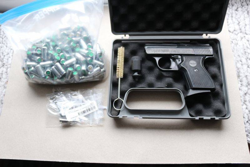 Ich biete hier eine Record im Kal. 9mm PA mit 204 Platzpatronen und Signalbecher an. Die Pistole funktioniert perfekt, ist ca drei Jahre alt. Mit dazu sind noch Ersatzschlittenfeder, Ersatzschlagbolzen und Ersatzschlagbolzenfeder und Verschlussboden.PRIVATVERKAUF- daher keine Garantie, Minderung oder Rücknahme. Die Beschreibung ist nach bestem Wissen und Gewissen erfolgt
