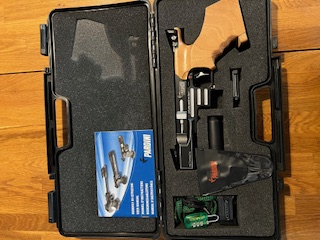 Die Pistole wird im Original Koffer mit Werkzeug, 2 Stk. Magazin a 5 Schuss, und Schloss ausgeliefert.