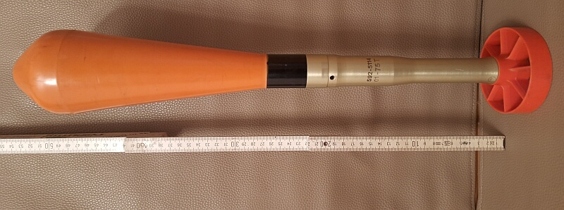 Angeboten wird eine Deko Übungs-Gewehrgranate für das damalige schweizer Sturmgewehr 57.Der offizielle Name lautet " Übungsgranate Ord.1958 für Sturmgewehr 57/Variante 4 "