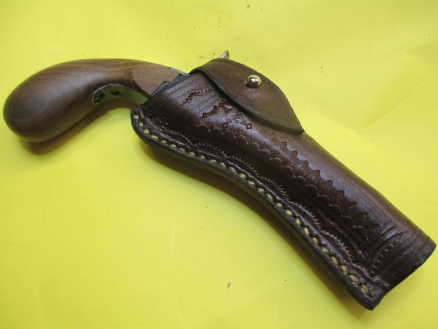 Sie bieten auf ein handgefertigtes, individuelles und hochwertiges Holster im Westernstil für einen Liegi cal. 44 Derringer“.