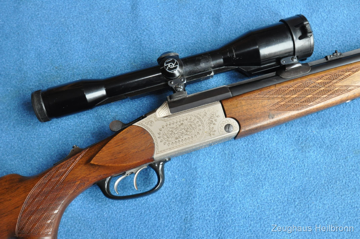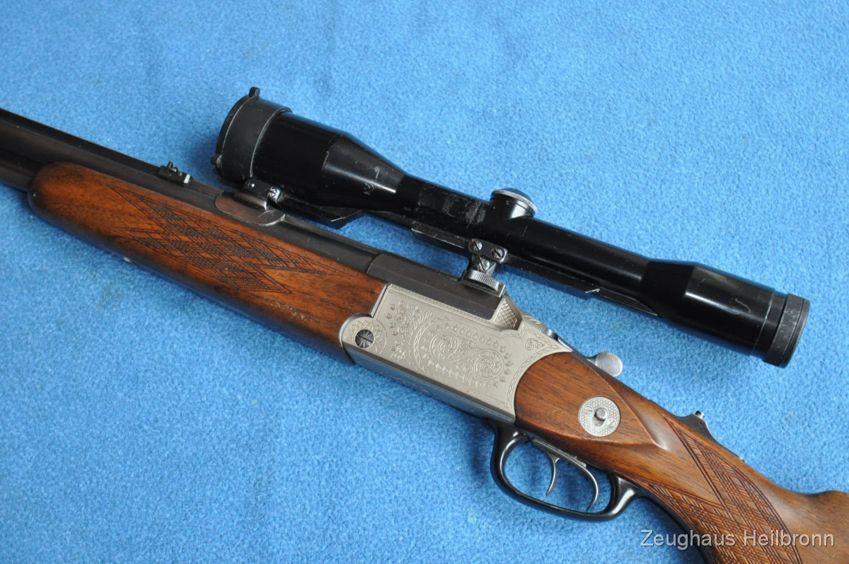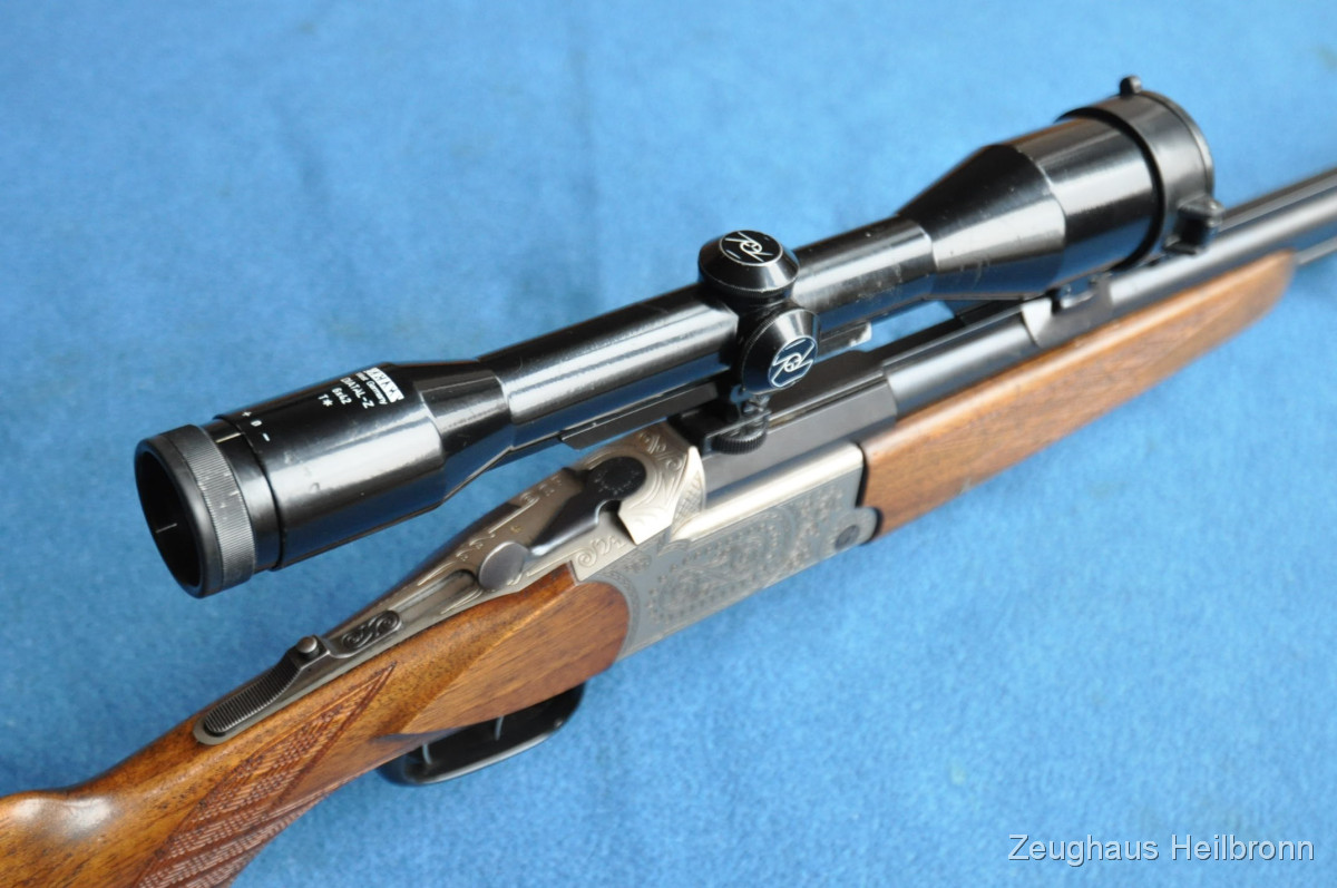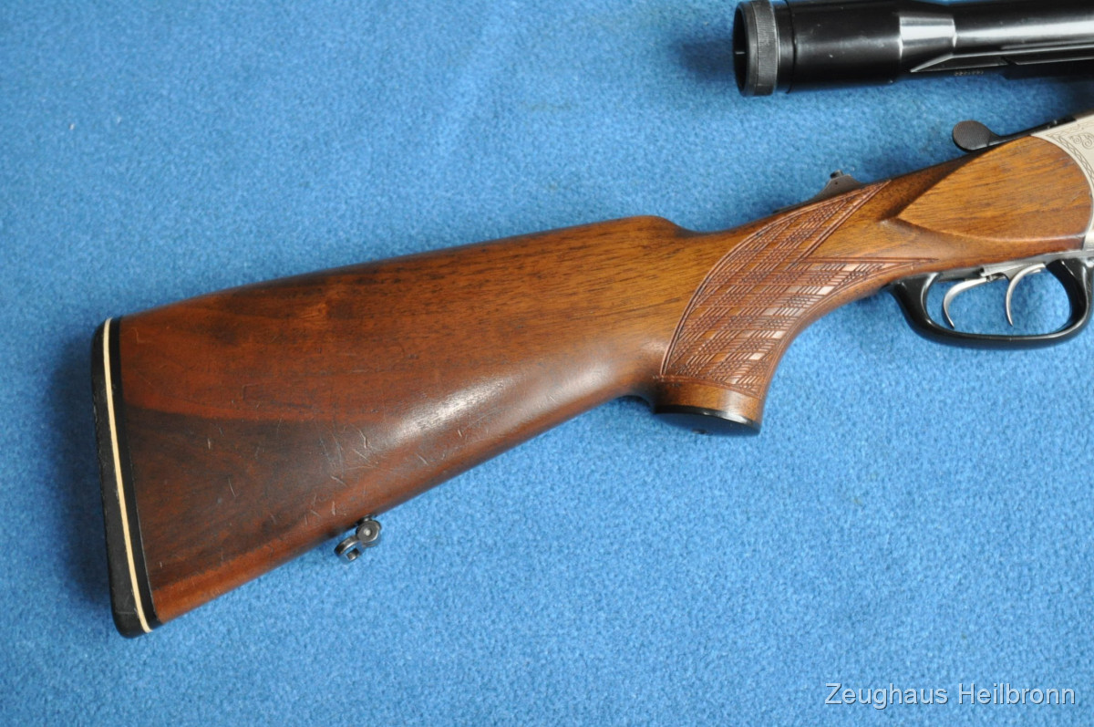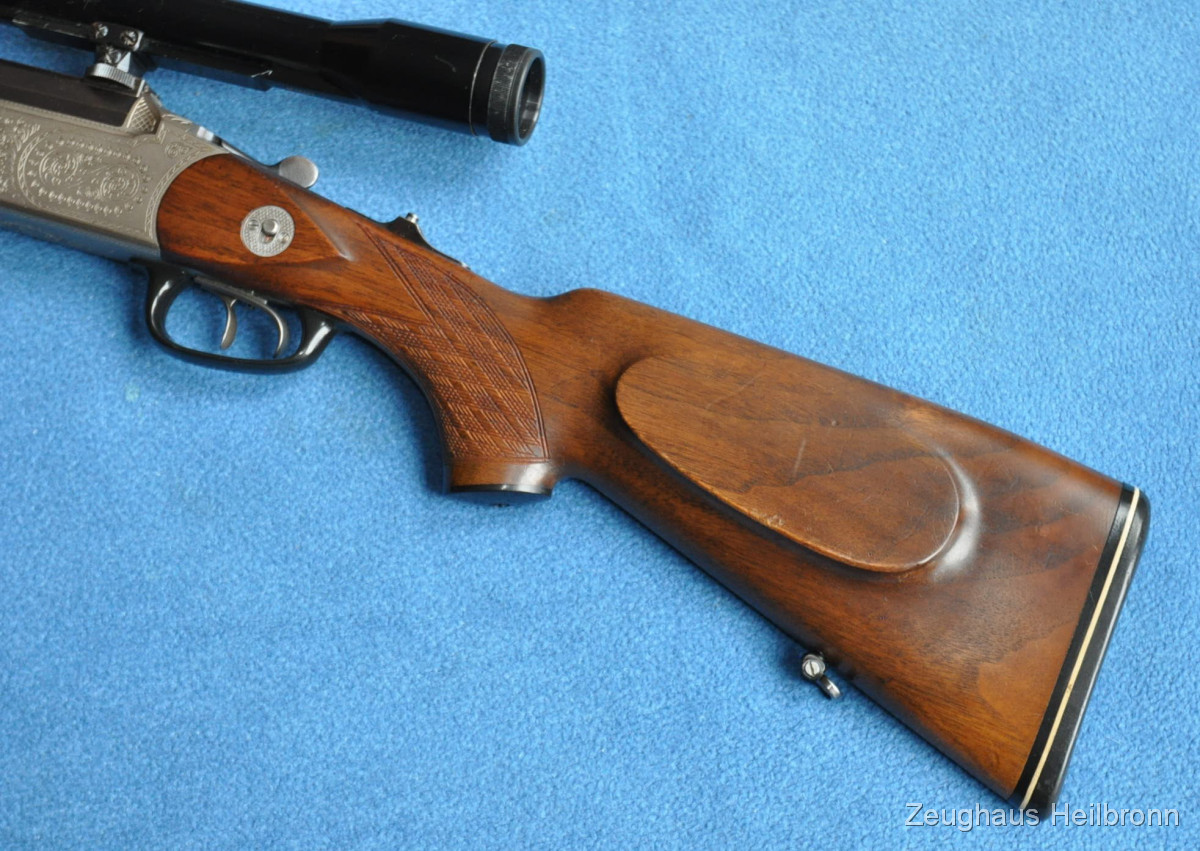 BBF in einem schönen Zustand, System dicht, Läufe blank, volle mechanische Funktion. Mit mündungslangem, rostfreien Einstecklauf in .22 Hornet von B. Fritz.