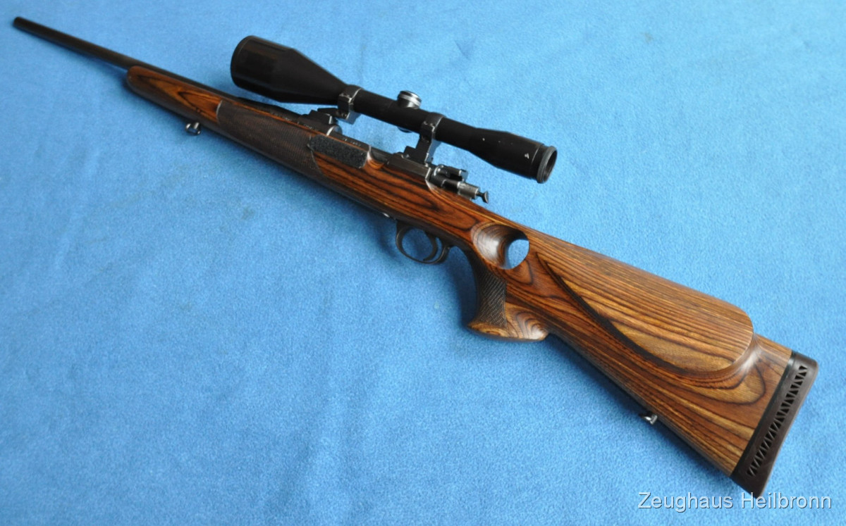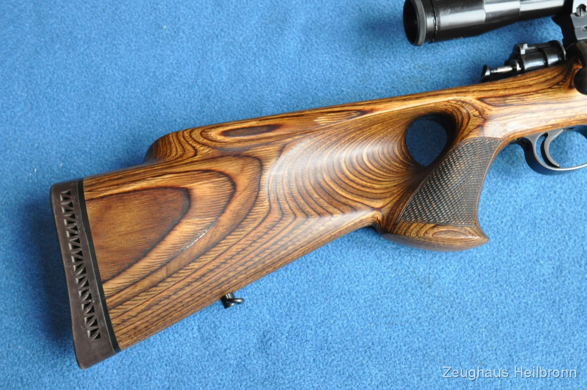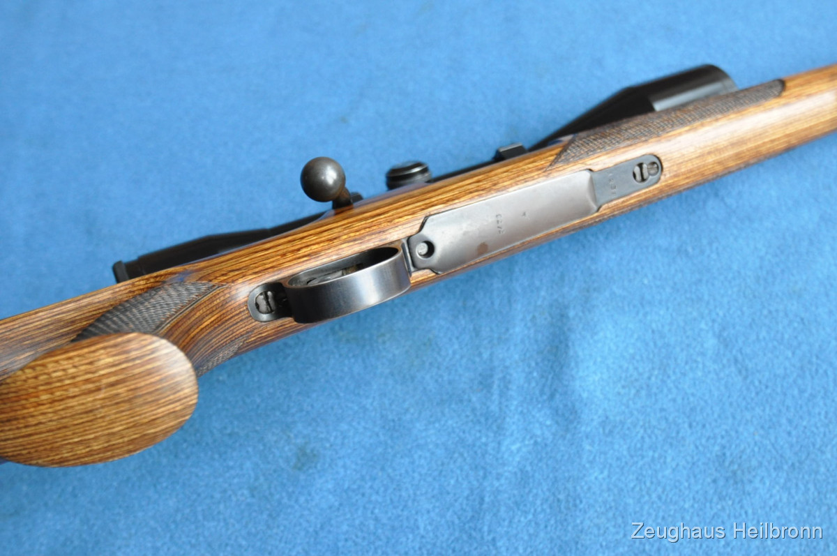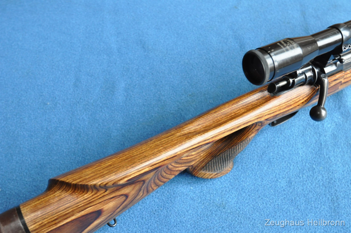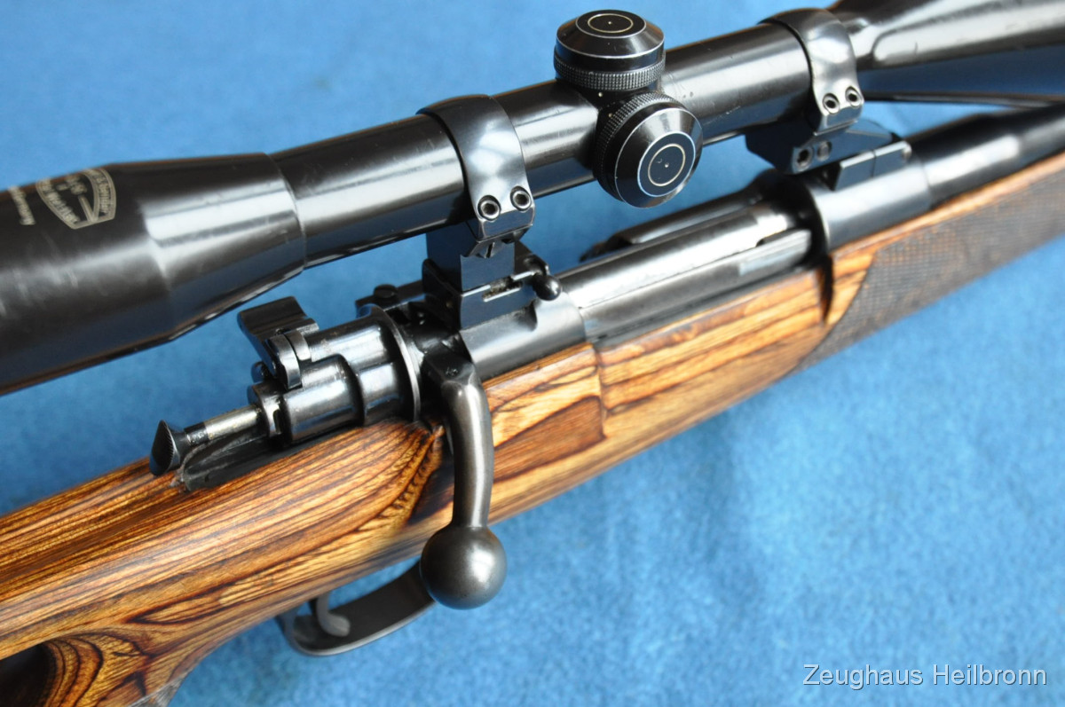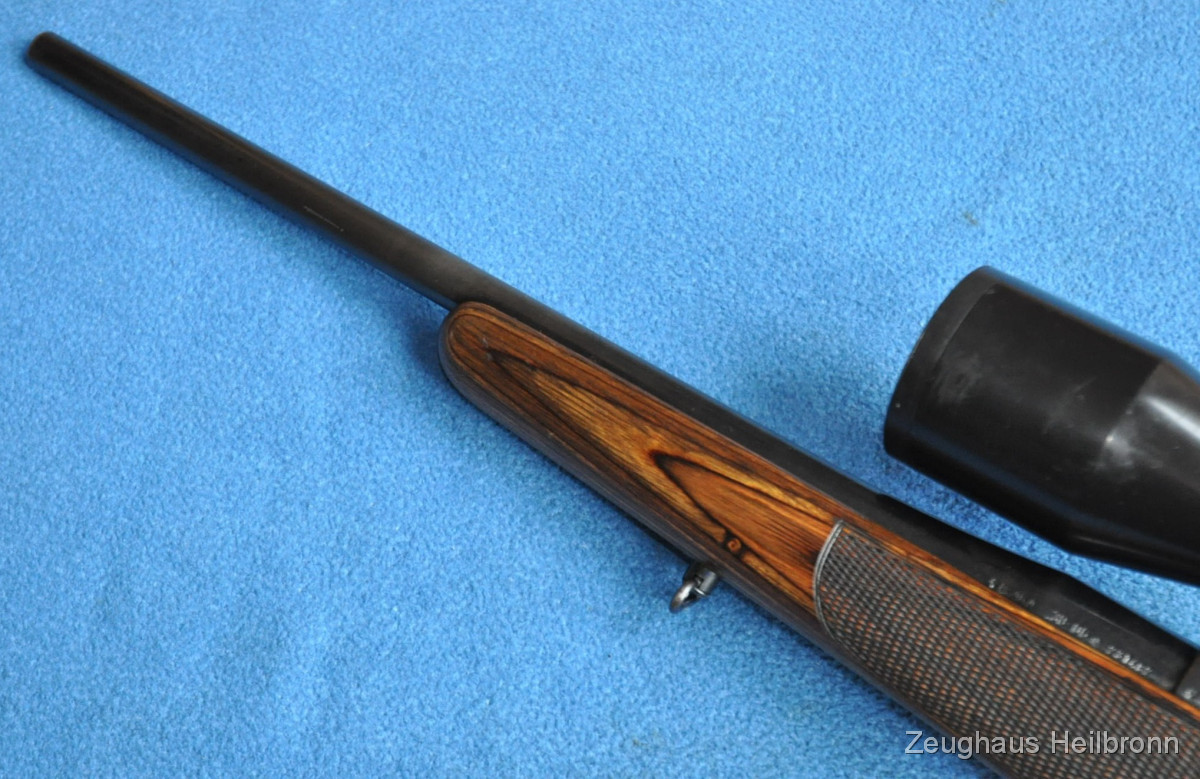 Repetierbüchse in einem sehr schönen Zustand, Lochschaft mit zuverlässigem 98er System, Ganzstahl ohne Plastik und Aluminium wie heute gerne verwendet....volle Funktion, Lauf blank. Schloss lässt sich mit Drücker am Schlösschen Entspannen und Spannen. Sehr führige Waffe, mit anderem ZF auch sehr gut für Drückjagden geeignet.