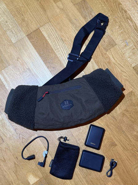 Härkila Jagd Muff mit Heizung + 10.000mAh PowerBank + USB Verlängerung inklusive (siehe Bilder). Ich habe den Muff nie verwendet und daher ist er als Neuwertig zu betrachten. Funktioniert einwandfrei. Die Heizstufen lassen sich an der Rückseite einstellen.