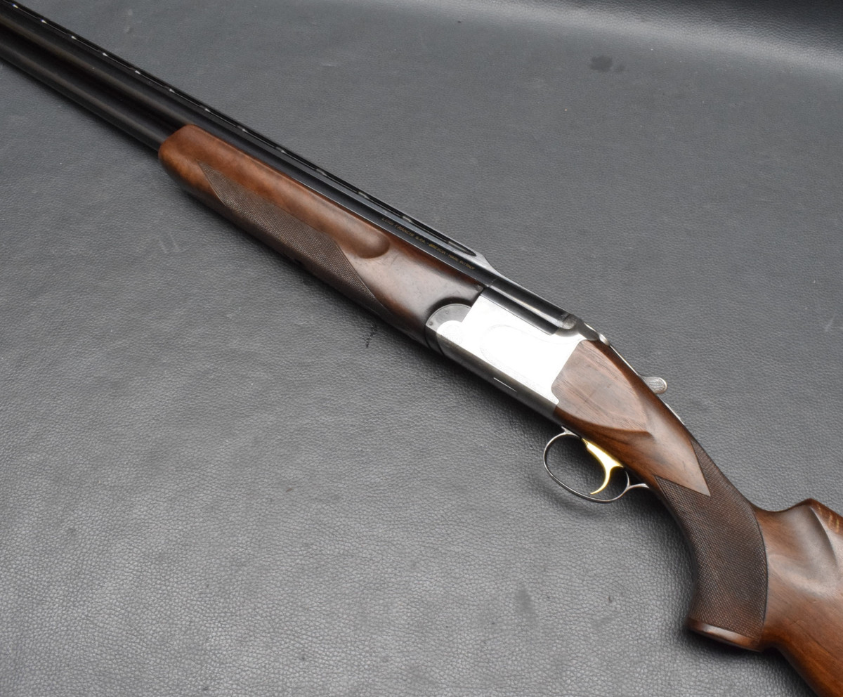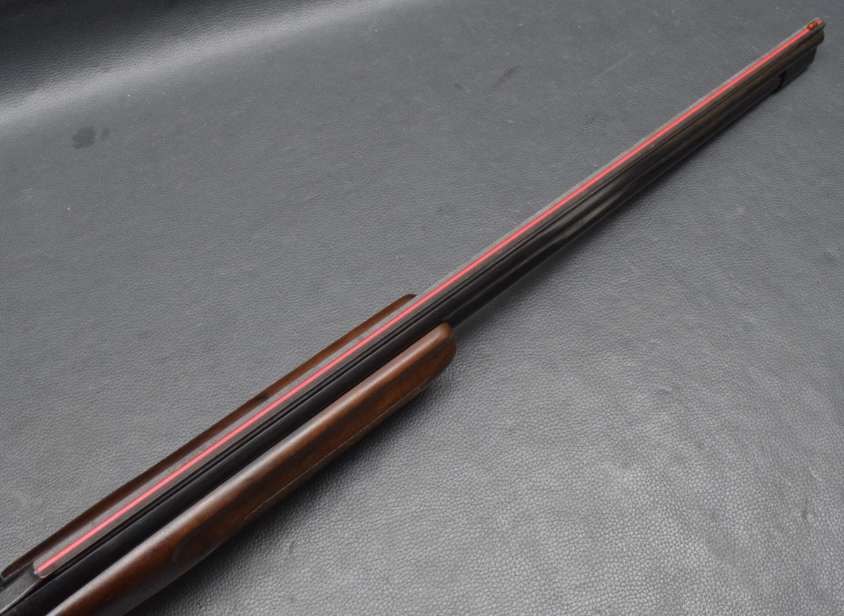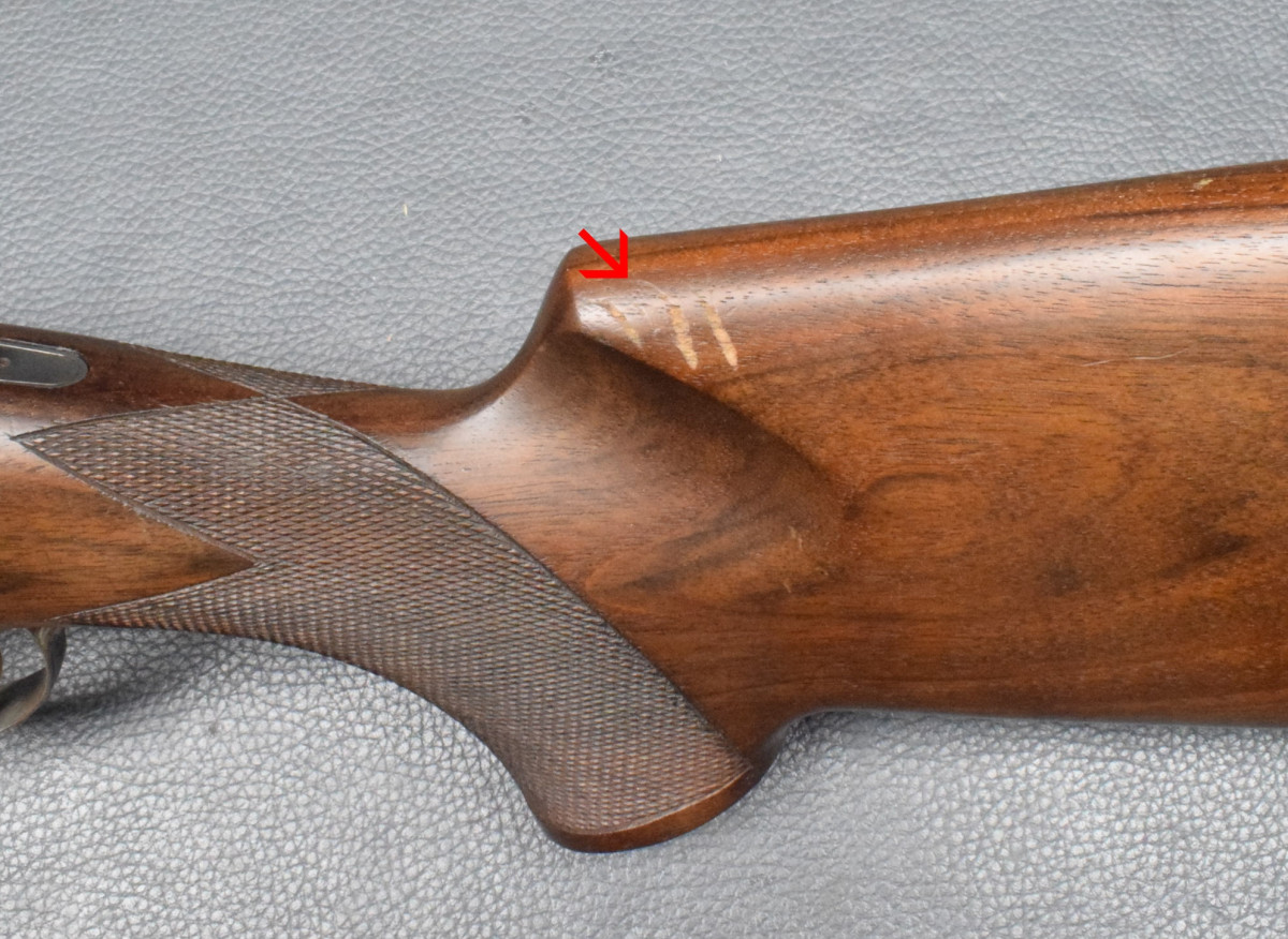 Läufe sehr gut, Brünierung 98%, Schaft mit Gebrauchsspuren,