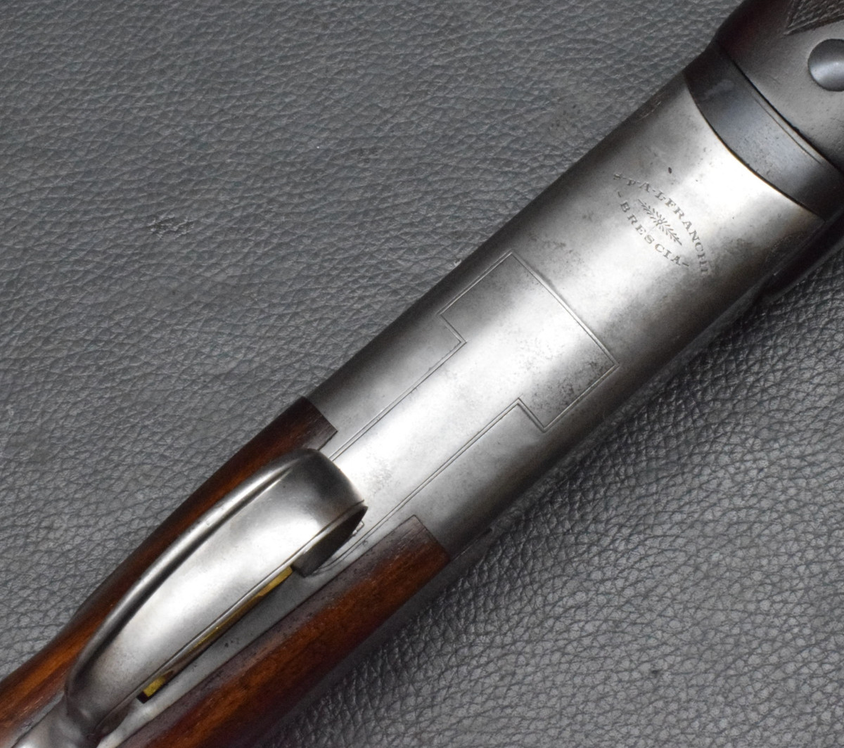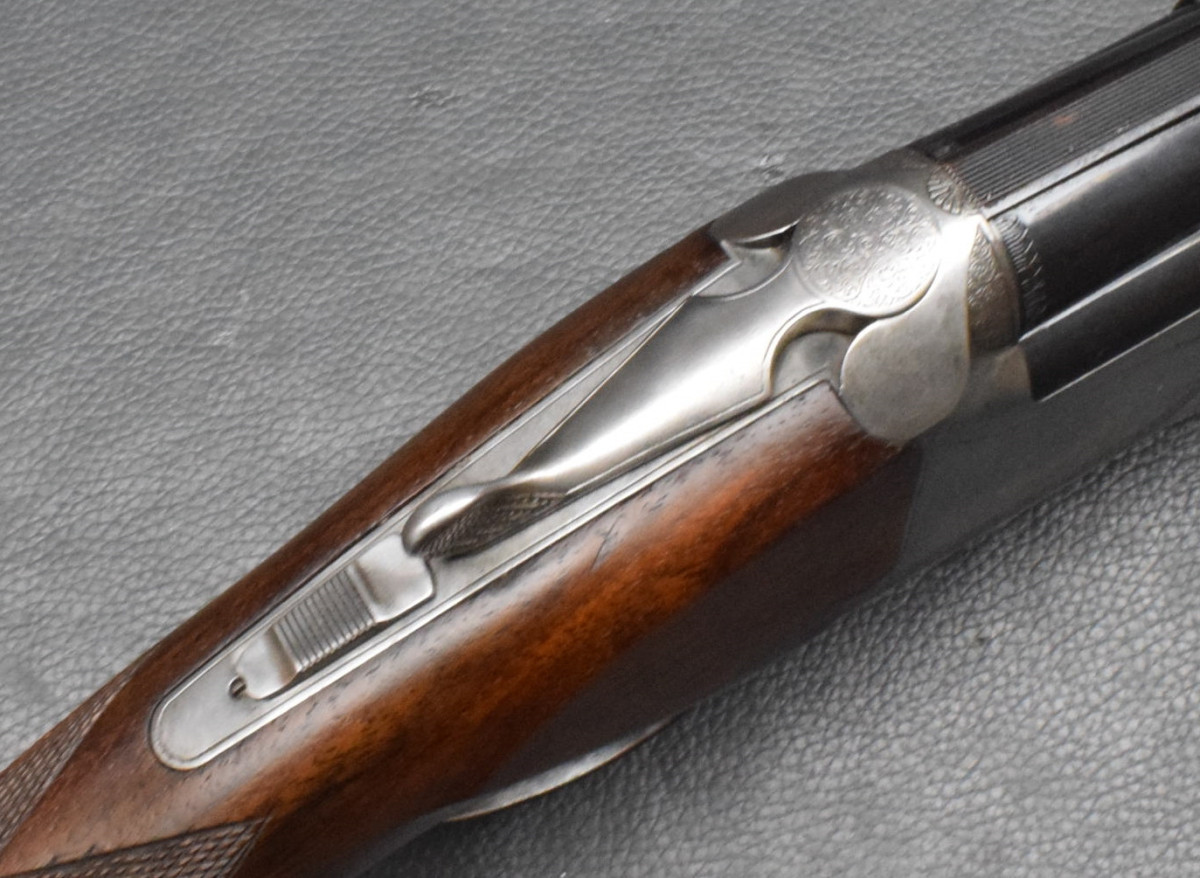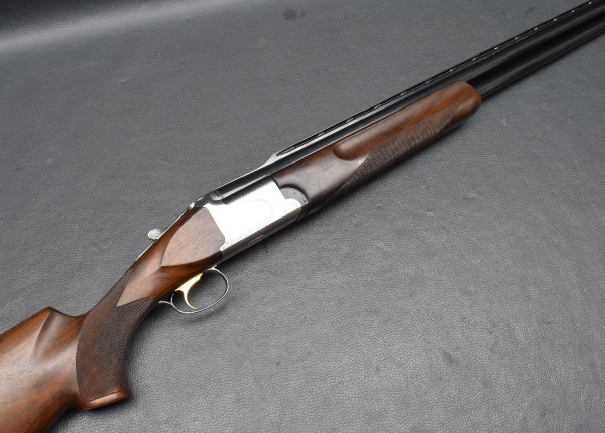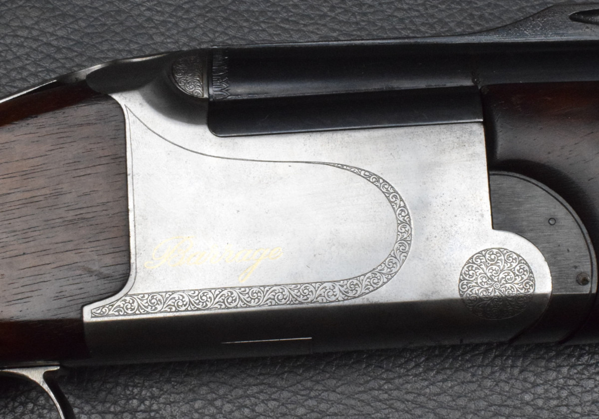 Läufe sehr gut, Brünierung 98%, Schaft mit Gebrauchsspuren,