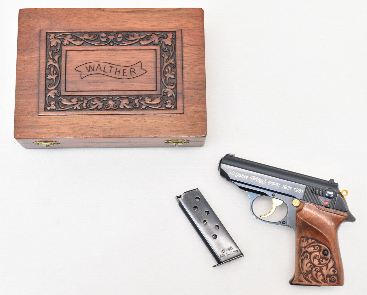 Jubiläums Pistole W A L T H E R " 50 Jahre PPK " Kal. 7,65mm Br.