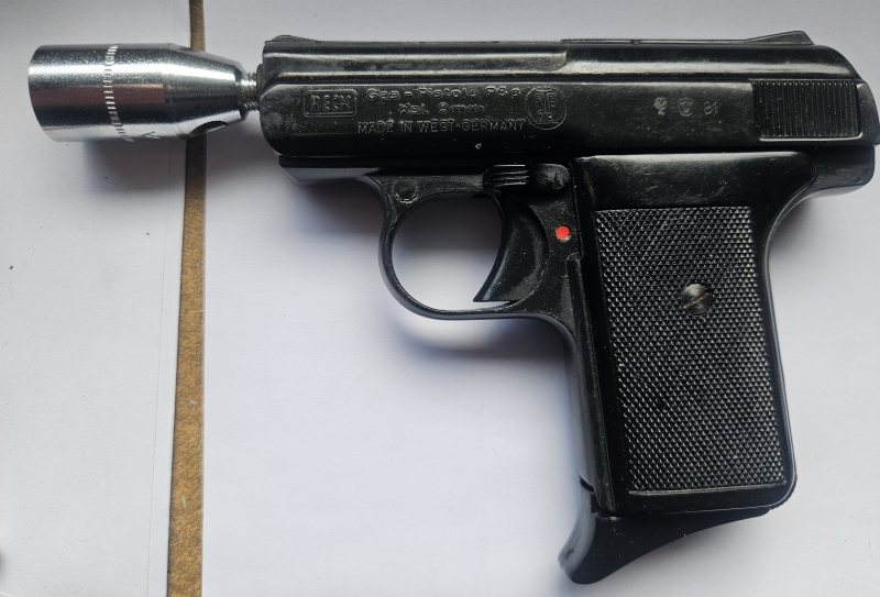 Reck P6S Gaspistole 8mm OVP mit Magazin und ein Abschußbecher -lege ich dabei,, ( der passt irgendwie nicht so richtig villeicht wegen CHROM!!!!)!!!!...Siehe Bilder.....Baujahr 1981......