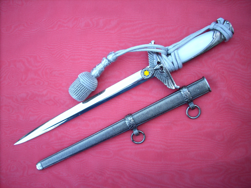 Sehr schöner Dolch für das Diplomatische Corps / Diplomatendolch mit Portepée. Griffschalen Perlmuttimitationen. Auf der Klinge eingeschlagenes Herstellerlogo: Höller-Berlin. Geringe Gebrauchsspuren. Zustand siehe Fotos, die, wie immer, Bestandteil der Artikelbeschreibung sind. Keine Garantie und keine Rücknahme.