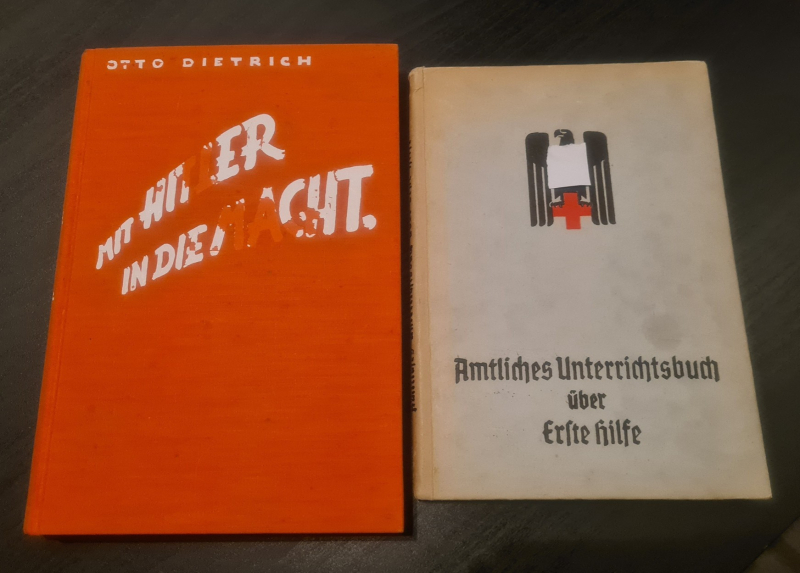 Biete hier zwei Bücher aus dem zweiten Weltkrieg an. Amtliches Unterrichtsbuch über Erstehilfe 17. Auflage aus 1942 und Mit Hitler in die Macht von Otto Dietrich 2. Auflage von 1934. Würde beide als vom Zustand her als gut befinden für das Alter. Ich habe noch weitere Bücher aus der Zeit, gerne bei Interesse mal anfragen. Dies ist eine privat Auktion. Daher kann ich keine Garantie, Gewährleistung oder ein Rückgaberecht einräumen. Die Fotos sind Bestandteil der Beschreibung. Wenn etwas unklar ist gerne weitere Bilder anfordern.