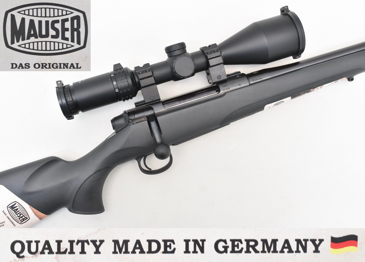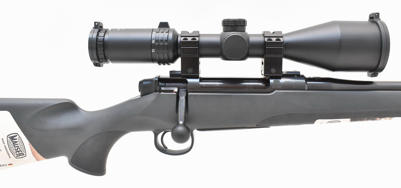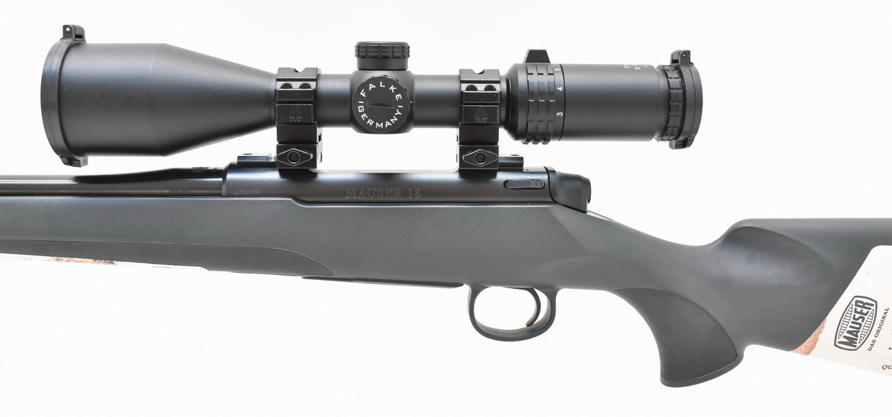 Solider Gebrauchs - Repetierer " Made in Germany " aus dem Hause MAUSER. Das Modell 18 mit Stahl - Systemkasten. Zylinderverschluß mit 3 - Warzen - Verriegelung. Einstellbarer Direktabzug. Seitliche 3 - Stellungssicherung. Einfach zu entnehmendes Magazin. Kalt gehämmerter 19" Präzisionslaufmit Mündungsgewinde M15x1.Ulmer Beschuß 2025. Robuster, 352mm langer zwei Komponenten Synthetik - Schaft für Rechts- und Linksschützen mit Softgrip - Inlays ( Schaftlänge gemessen vom Abzug bis Mitte Gummischaftkappe ). Variables FALKE Zielfernrohr 3 - 12 x 56 " Hunting " mit 11 - fach verstellbarem Leuchtabsehen LA 4 ( Leuchtpunkt ). UTG Max Strength Quick Detachable Twist Lock ZF - Montage. Augenabstand 285mm.