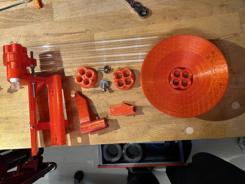 Funktioniert mit allen Kalibern die ich zum Testen hatte: mit kleinen Änderungen sind sicherlich auch andere Kaliber möglich. Es sind kleinere Kugellager vorhanden, damit es reibungslos läuft.