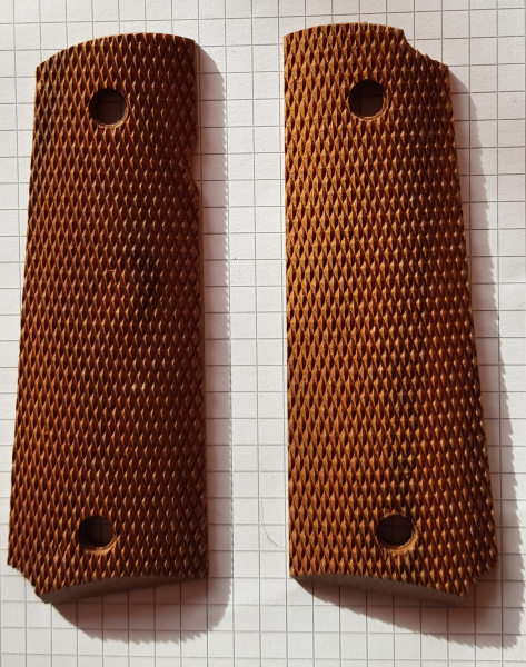 Sie bieten hier auf ein paar ( li.+re. ) Griffschalen für Colt 1911-er und baugleiche pistolen. Neu und unbenutzt. Hartholz und Checkering. Es handelt sich um exakt die Griffschalen die auf dem Bild zu sehen sind. Weitere Fragen, Bilder etc. gerne jederzeit per Anfrage hier. Versand per DHL mit Send.Nr. oder auch nach Wunsch. Mfg.