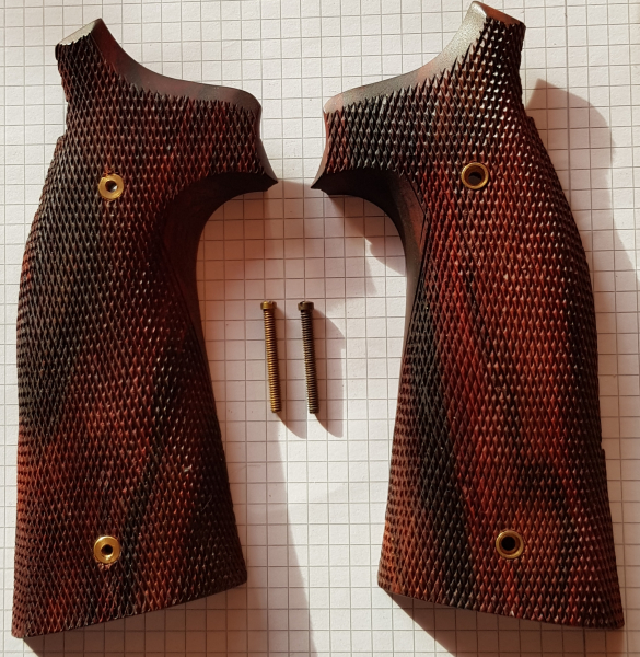 Sie bieten hier auf ein paar (li. + re.) Griffschalen passend für S&W 686 und baugleiche revolver als sog. "Big Butt" ausführung. Square butt und offene rücken.Komplett mit Messing schrauben. Optimal für beidhändiges bedienen die Waffe. Edelholz und angenehmes Checkering. Farbe Weinrot/Schwarz. Neu und unbenutzt. Es handelt sich exakt um die Griffschalen die auf dem Bild zu sehen sind. Weitere Fragen, Bilder, etc. gerne jederzeit per anfrage hier. Versand per DHL mit Send. Nr. oder auch nach Wunsch. EU Versand kann hoher sei. Mfg