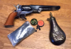 Vorderladerrevolver hat einen angenehmen Schlossgang und guten Abzug. Nußbaum-Holzgriffschalen.