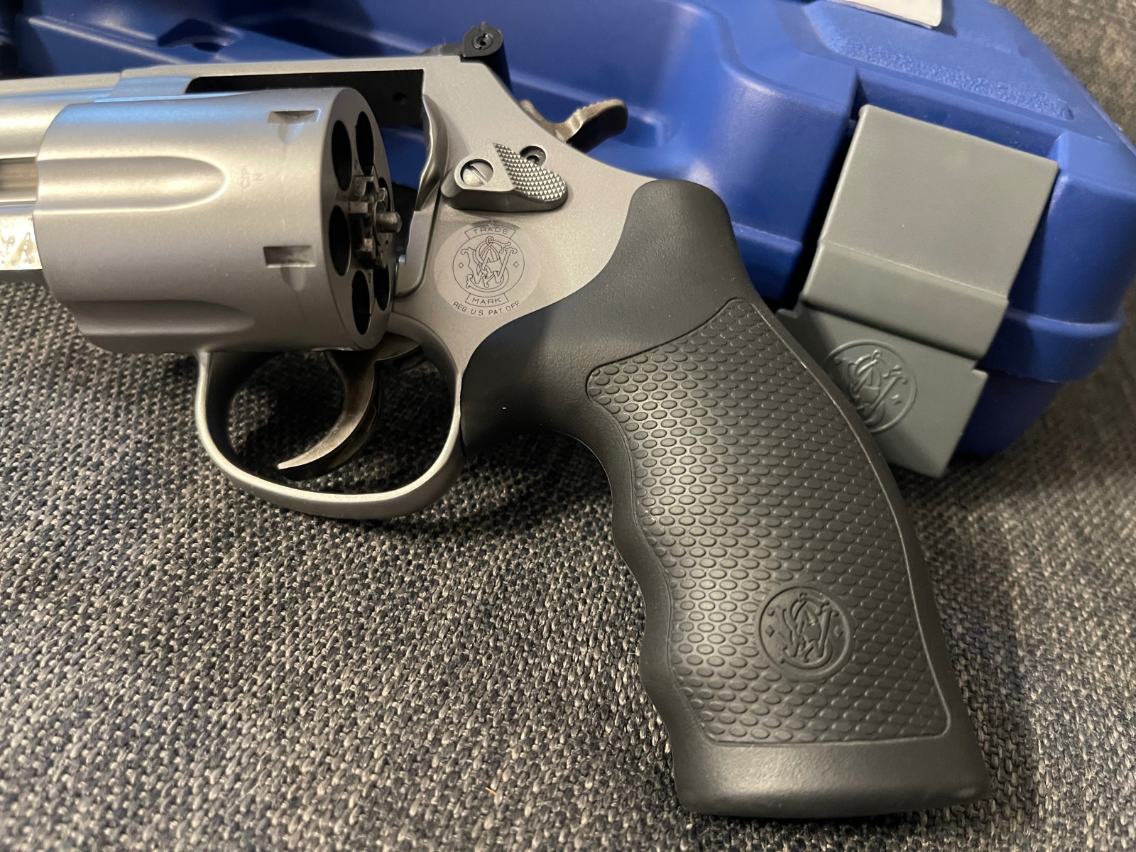 Zustand: Sehr Gut (siehe Fotos), technisch einwandfrei. Wurde damals vom Büchsenmacher mit Glasperlen gestrahlt nur dass S&W Emblem wurde vorher abgeklebt und die Oberfläche befindet sich daher noch in Stainless Steel.