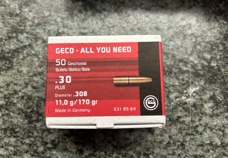 Ich Verkaufe meine GECO PLUS Geschosse im Kaliber .308 170grs (11,0 g). Die Päckchen sind ungeöffnet und Original verklebt. In jedem Päckchen sind 50 Geschosse enthalten. Beim Kauf von mindetsens 2 Päckchen (100 Geschosse) übernehme ich die Versandkosten. Ich habe zwei Produktionschargen... einmal 6 Päckchen und einmal 2 Päckchen. Verkaufsgrund ist ein Kaliberwechsel.
