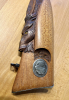 Neben der linksseitigen Schaftbacke ist eine kleine Patchbox eingebracht, silberfarbener Deckel