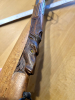 mit Muschelmotiv. Der Schaft ist aus Buche, mit einigen Wurmlöchern, aber sauber und wahrscheinlich geölt… Kein Lack drauf. Der Ladestock ist auch noch vorhanden, ebenso filigran wie die gesamte Flinte. Er hat wohl eine ältere Klebestelle, die aber fast unsichtbar ist , aber gut hält. Der Schaftabschluß am Kolben besteht aus einer Messingplatte? Bin mir nicht sicher…