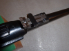 Nummerngleiche Hülse mit der Jahreszahl 1916. Nummerngleicher Verschluß – hinteres Gelenk ist ohne Nummer. Kaiserliche Abnahme- Bestempelungen rechts an der Gabel.