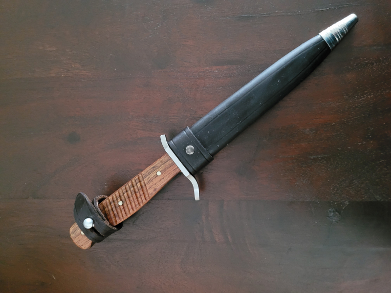 Verkaufe hier diesen Grabendolch von der Firma Böcker mit Lederscheide dies ist weich und wurde immer Gewachst fies ist eine Orginalgetreue Neuauflage von Böcker den rest von den Infos kann man sich direkt bei Böcker durchlesen dier Dolch lag nur in der Vitrine wurde immer mit Balistol eingerieben absolut unbenutzt keine Orginal Verpackung vorhanden. ORGINAL PREIS BEI Böcker 254 Euro Privatauktion ohne Gewährleistung oder Rücknahme