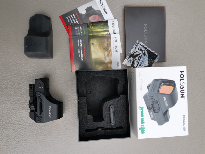 Hallo biete mein neuwertiges, nie benütztes Holosun HE510C-GR zum Verkauf an. (man kann es als neu beschreiben, nur aus dem Karton raus genommen wegen Fotos zum Einstellen) siehe Bilder. Kaufdatum 2024. Alles komplett dabei inkl. Schmutzabdeckung wurde separat bei der Fa. Holosun dazu gekauft (20,- €). Schnellmontage ist bereits für eine Picatinny-Schiene vorhanden. Mit dem Holosun HE510C-GR ist nie ein Schuss abgefeuert worden.
