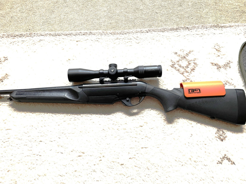 Benelli Argo E, Kal. 9,3 x 62, LL= 51cm, EAW-Stahl-Picatinnyschiene, Kunststoffschaft mit Verlängerung auf 36,2cm (Schaftende bis Abzug), Originalschaftkappe liegt bei, höhenverstellbarer Hinterschaft, zusätzliches 8-Schussmagazin.