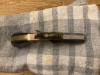 An der Unterseite „1849“. Hölzerner Griffschalen am Messingrahmen. Unten gemarkt mit „V“.