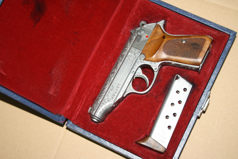 Aus einer großen Sammlung kommt hier diese voll gravierte Walther PP im Kal. 7,65mm Br. zur Auktion. Dieses Sondermodell ist im absolut neuwertigen Zustand. Lauf und Funktion natürlich einwandfrei. Kommt in der dazugehörigen Präsentations-Box und mit Reserve-Magazin.