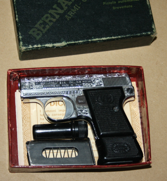 Aus einer großen Sammlung kommt hier diese voll gravierte Bernardelli im Kal. 6,35mm Br. zur Auktion. Dieses Sondermodell ist im absolut neuwertigen Zustand und kommt mit dem abgebildeten Zubehör. Lauf und Funktion natürlich einwandfrei.